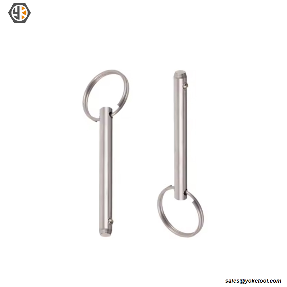Фіксуючыя штыфты Yokelink прызначаны для выкарыстання ў аперацыях часовага хуткага адключэння. Выкарыстоўваецца як зручны спосаб рэгулявання або зняцця аксесуараў на абсталяванні. Штыфт мае шарыкавы падшыпнік на адным канцы са сталёвай спружынай, якая націскаецца і выскоквае, каб зафіксаваць шпільку на месцы. Жорсткія працэдуры кантролю якасці забяспечваюць стабільную зашпільку, на якую вы можаце разлічваць. Стандартныя памеры вырабляюцца з нізкавугляродзістай сталі, ацынкаванай або нержавеючай сталі.